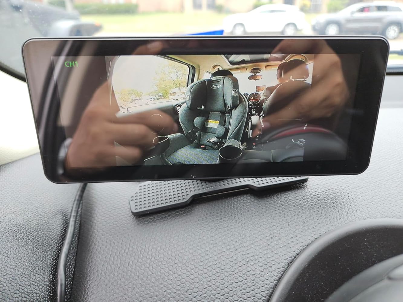 If you are looking for a system that allow you to monitor your back seat without the need to get your eyes of the road, this system will definitely add safety to your driving. Keeping eyes on your little once, dogs, or what ever you have on the back seat.Package has all you need to install, and it took me 15 minutes to set it in my car, should be very easy to move from car to car. I wish they will add a Velcro for the monitor system, it has only double sided tape. A Velcro would add flexibility for switching cars, but should be easy to get this by myself.Camera allow to view the entire back seat from door to door, so it is nice.There are not much controls on the monitor (It is plug and play, simple), you can switch from dual camera view to a single view and 3 levels of brightness. You can see fairly well what happening in the back, image is decent, not high quality, but good enough to view what going on behind you.Turning ON/OFF is a red lighted button on the power connector.If you need something simple and quick to set, for keeping peace of mind for what going on behind you, this product will do the trick.Note, I tested installation of cameras on 2024 Hyundai Tucson and 2016 Ford Edge and it fits fine.